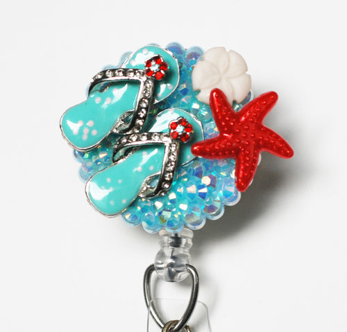 Fancy Blue Flip Flops Retractable ID Badge Reel