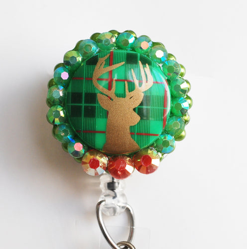 Gold Reindeer Silhouette Retractable ID Badge Reel