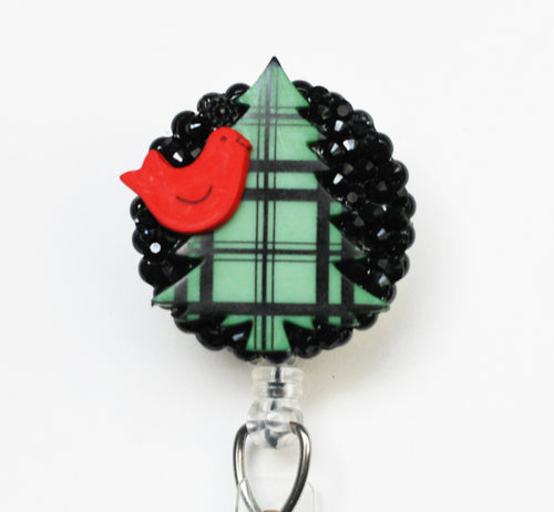 Green Plaid Christmas Tree Retractable ID Badge Reel