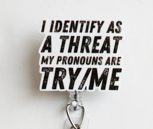 I Identify As A Threat My Pronouns Are Try/Me Retractable ID Badge Reel
