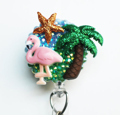 Pink Flamingo Island Retractable ID Badge Reel