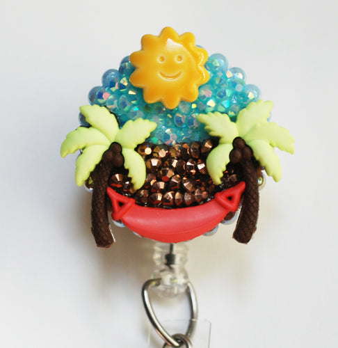 Fancy Blue Flip Flops Retractable ID Badge Reel