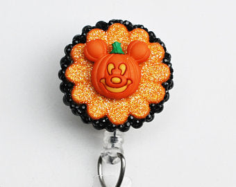 Halloween Mickey Mouse Pumpkin Retractable ID Badge Reel