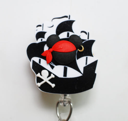 Mickey Mouse Pirate Ship Retractable ID Badge Reel