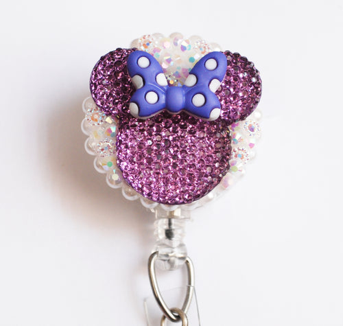 Minnie Mouse Purple Silhouette And Polka Dot Bow Retractable ID Badge Reel