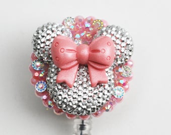 Minnie Mouse Shimmer Pink Bow Silhouette Retractable ID Badge Reel