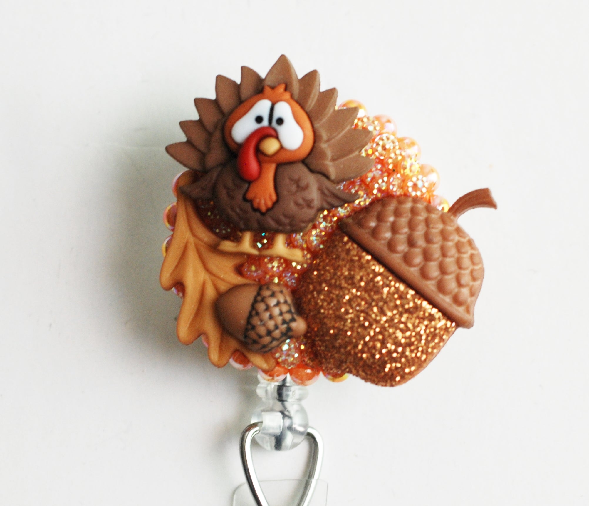 This is an acrylic plastic Thanksgiving Turkey who is surrounded by signs of Fall. Each flatback pearl and jelly rhinestone has been individually placed to add beauty to these pieces. A Swarovski crystal has been lovingly placed on the snap closure.