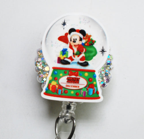 Mickey Mouse Christmas SnowGlobe Retractable ID Badge Reel