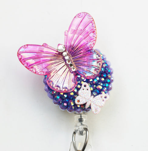 Pink Iridescent Butterfly Retractable ID Badge Reel